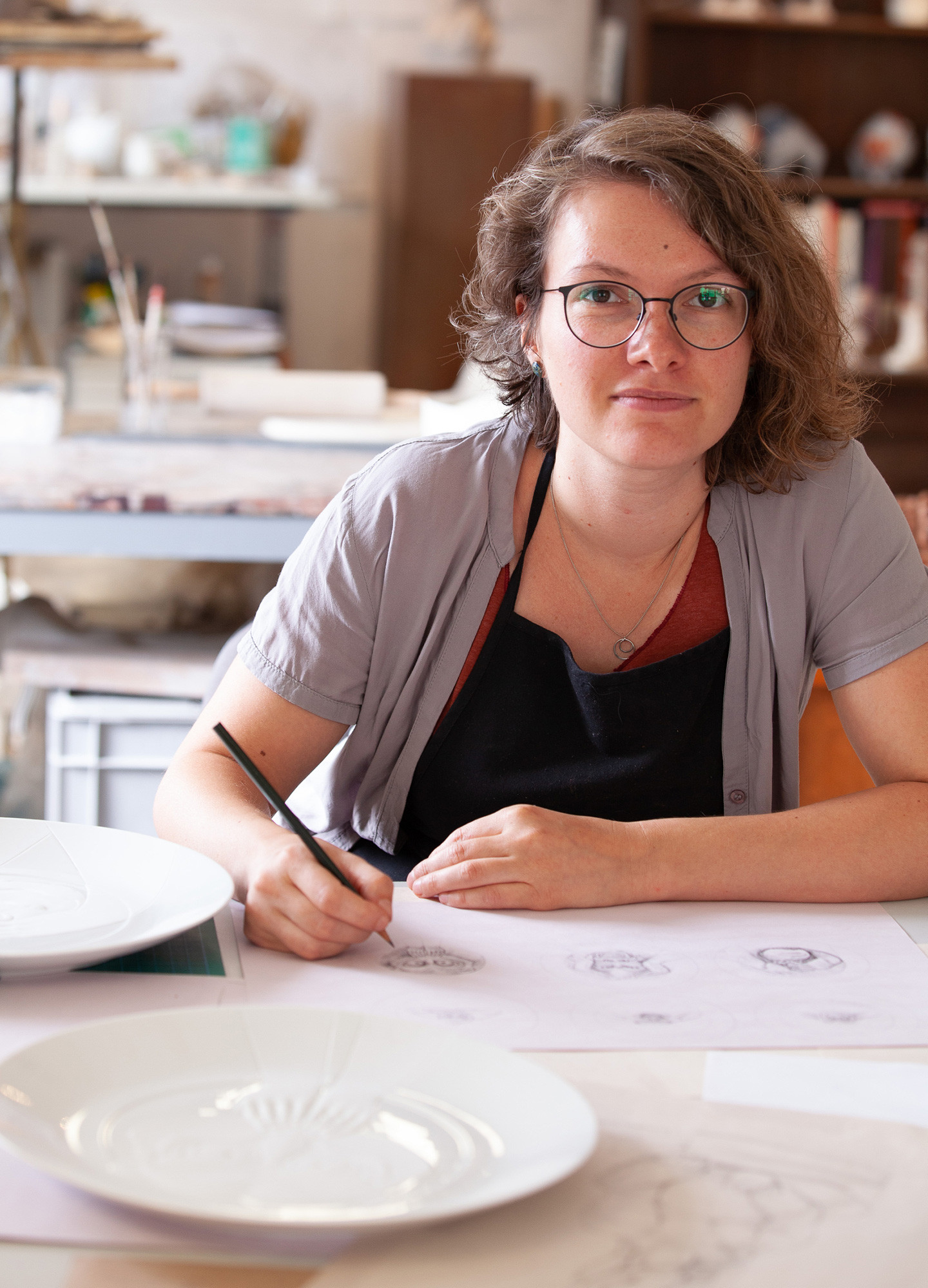 For Lena Hensel, paint décors are more fast-lived and versatile than sculptural design and are one of the ways to reposition oneself in today's world, to present oneself in a modern way and at the same time to reflect on the craftsmanship of the manufactory’s artisans. In her studio, Lena Hensel collects paints and decorative patterns using different techniques in order to experiment with them. In doing so, she aspires to go beyond classic patterns and further develop the manifold potential of paint design to ultimately create new products.