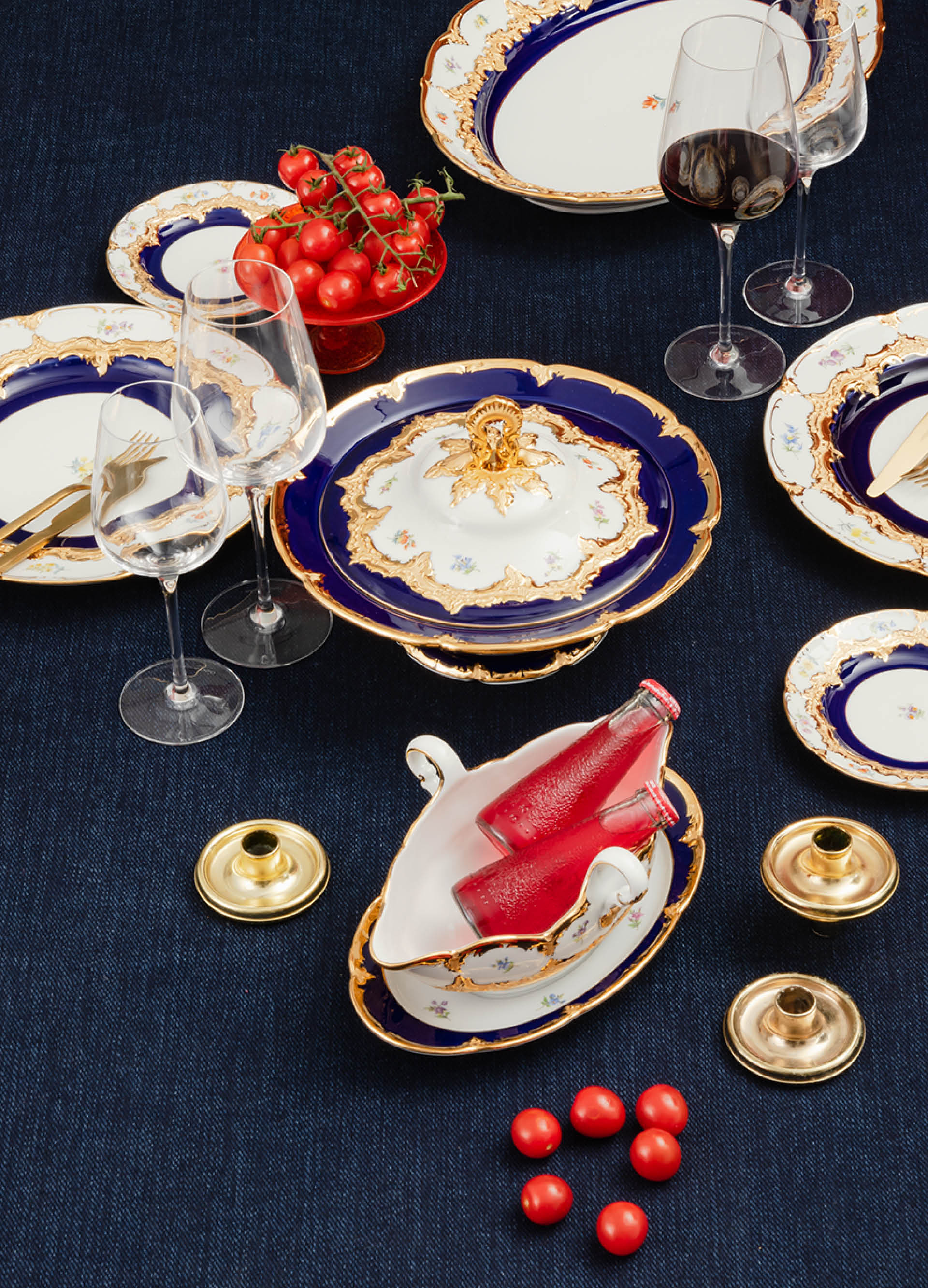 “With its royal blue colours, elaborate reliefs, and splendid trim of 23-karat gold, the ‘B-Form’ service is a masterpiece of European dining culture.”