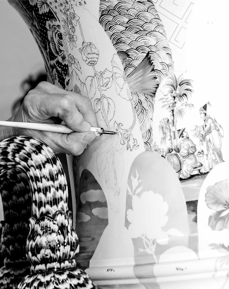 Unique handcraft techniques are similarly brought back to life in the upcoming “Limited Masterworks” collection — delicate Limoges painting, for example, applied by porcelain painter Lidija Schrenk on an exquisite vase form by master modeler Ernst August Leuteritz.