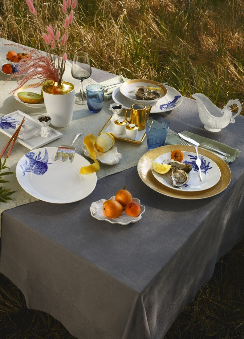 Summer is the season for light fish dishes and seafood menus. As with all table settings, there are special rules to consider when setting the table for fish, crab or seafood, with porcelain tableware requiring dedicated foresight and consideration.