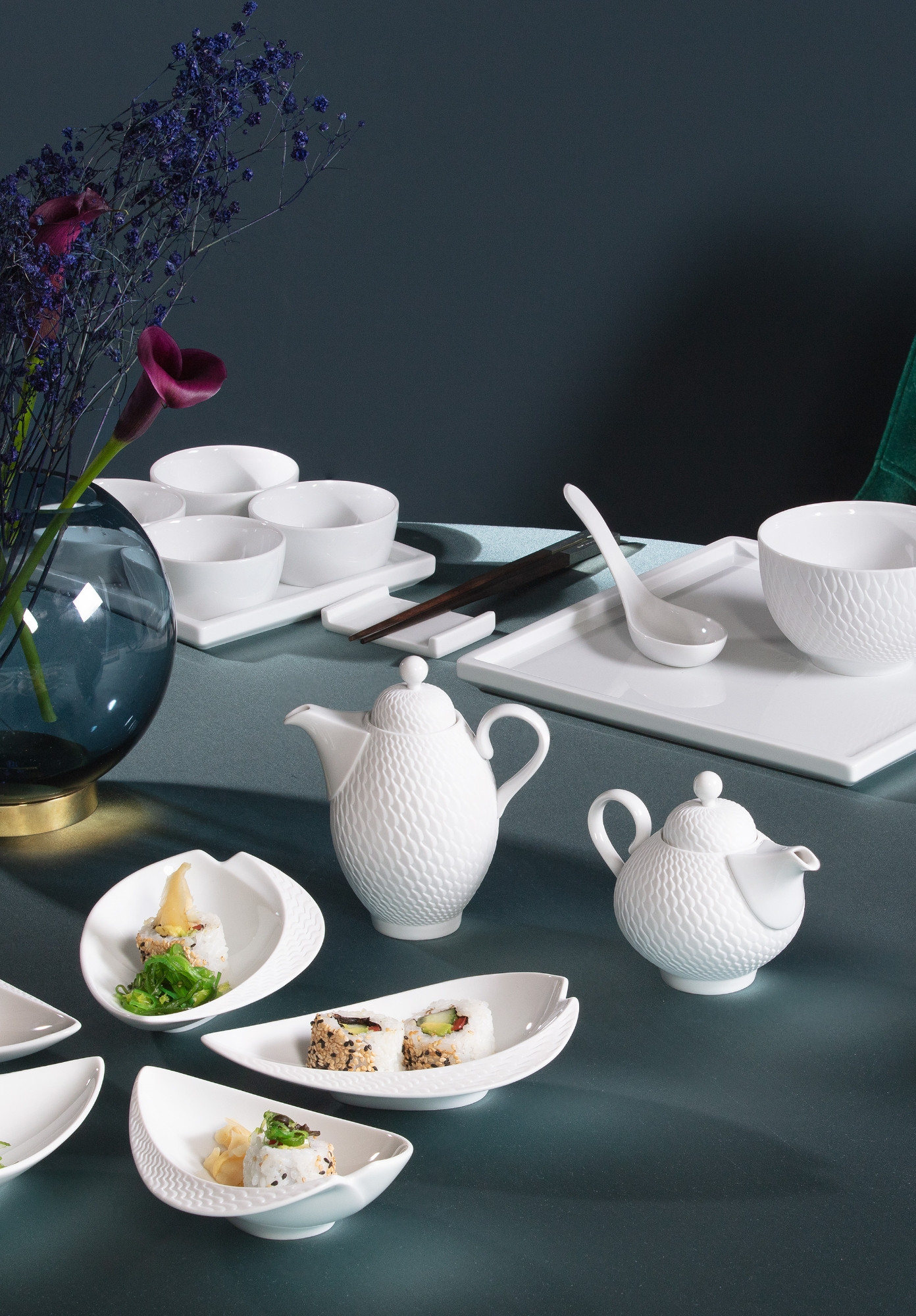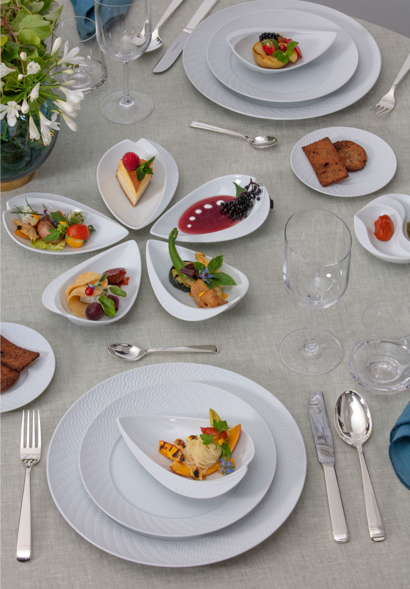 Discover the extraordinary service that combines the straight lines of the "N°41" shape with the sweeping relief of the popular "Waves" shape to create a uniquely modern look.