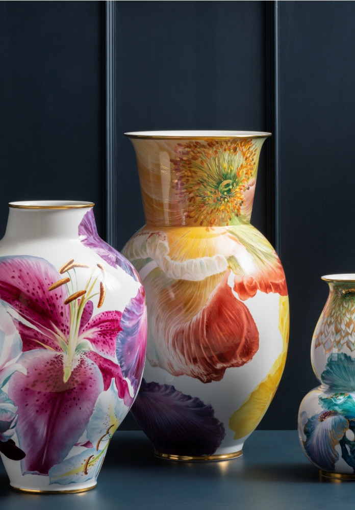 For the vases and Home Deco collection with MEISSEN, Olaf Hajek draws on the imagery of fantastic gardens and creates an artistic séance of magic and the metaphysical.