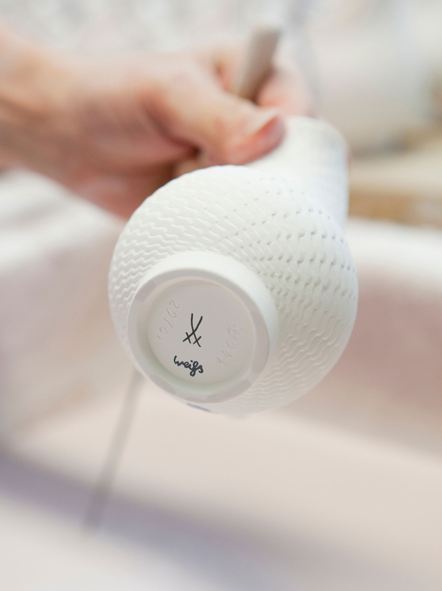 In 1710, the first European porcelain manufactory was finally founded by Augustus the Strong, who entrusted Böttger with the management of the "Königlich-Sächsische Porzellanmanufaktur zu Meißen". Stölzel succeeded in becoming arcanist and head master of the manufactory by 1719. The tasks of an arcanist were the preparation of the porcelain mass, the firing as well as the colouring, gilding and glazing, which of course required that Stölzel learn the secret recipe of Meissen porcelain. But what happened in 1719? The now 34-year-old got a woman pregnant, needed money and fled to Vienna, where he was promised an exceedingly high annual salary, a flat and other incentives. This is how Europe's second porcelain manufactory came to be founded in Vienna, initially copying everything that came from Meissen. The manufactory inspector at the time, Johann Melchior Steinbrück, did not want to let this go and in 1722 suggested that the crossed swords of the coat of arms of the Electorate of Saxony be used to mark the original Meissen porcelains. To this day, the swords are hand-applied to each individual porcelain in cobalt blue underglaze painting by specially trained "Swordsmen".