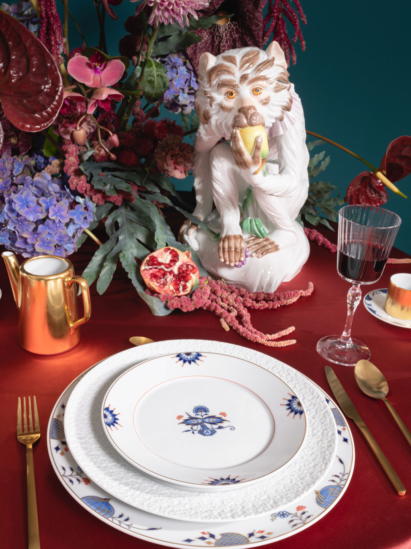 The "Noble Blue" dinner service sets discrete colour accents and is a modern adaptation of the "Blue Onion", the most successful blue decor in porcelain history. What appears to be "onions" are actually peaches and pomegranates - symbols of fertility and long life. The fact that the drawings are reminiscent of our root vegetables is solely due to the lack of detailed models at the time. A characteristic feature of the "Noble Blue" decor is the use of the manufactory's own cobalt blue, which is complemented by filigree details in bright red and discreet gold finishes - colours that have always been among the classic Christmas colours and therefore predestine the service especially for the festive Christmas table. "Noble Blue" also uses the modern "N°41" shape and is dishwasher-safe. Therefore, you are spared the hassle of washing the dishes by hand after Christmas dinner.