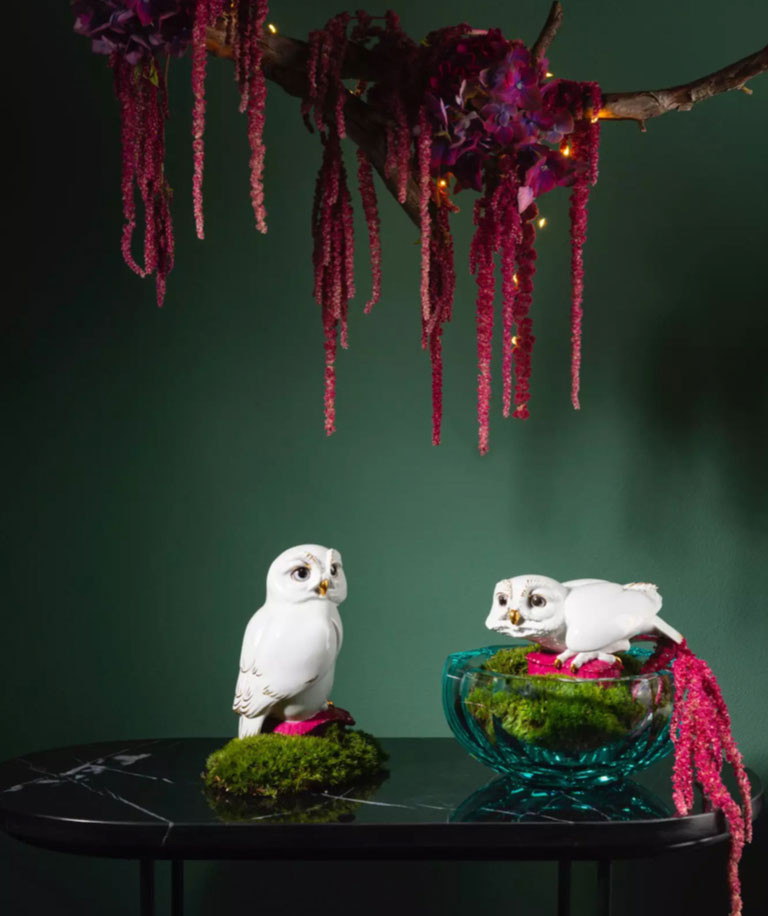 At first, it moved through the hallway with the utmost caution, past cupboards that were far too high and on top of which rested the most beautiful treasures made of the most radiant porcelain that the curious creature had ever seen. The squirrel with the golden arcanthus and the snow-white owl with a golden beak and the purple pedestal are just a few of the many figures that enveloped the room in a wintery, Christmassy aura.