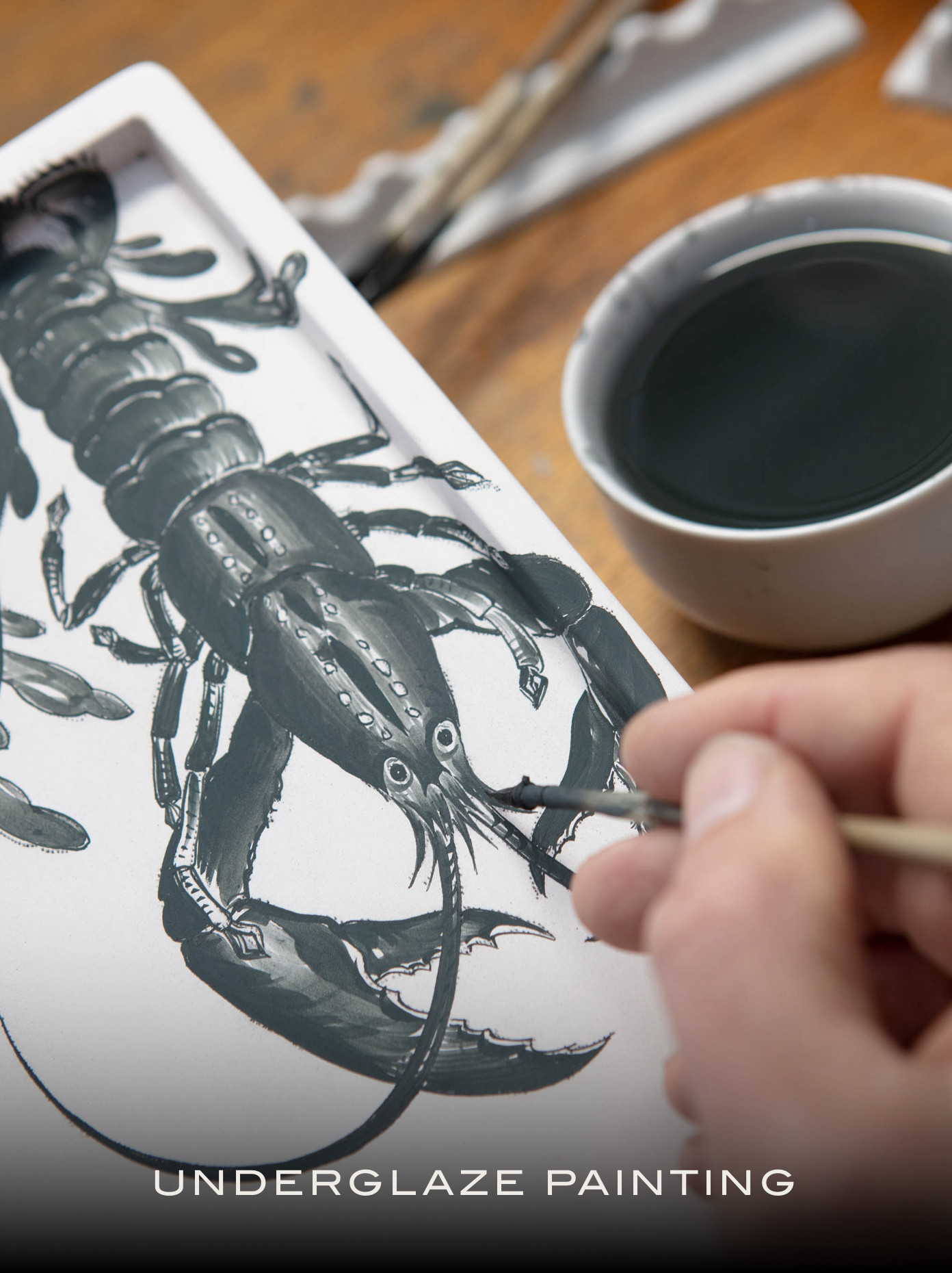 Inglaze painting, the colors find their way onto the porcelain after the second firing, i.e. the glost firing. The color sinks through the renewed firing at temperatures of up to 1500 °C into the glaze and the material and penetrates it over a large area. Accordingly, this technique is ideally suited for wide areas and backgrounds.