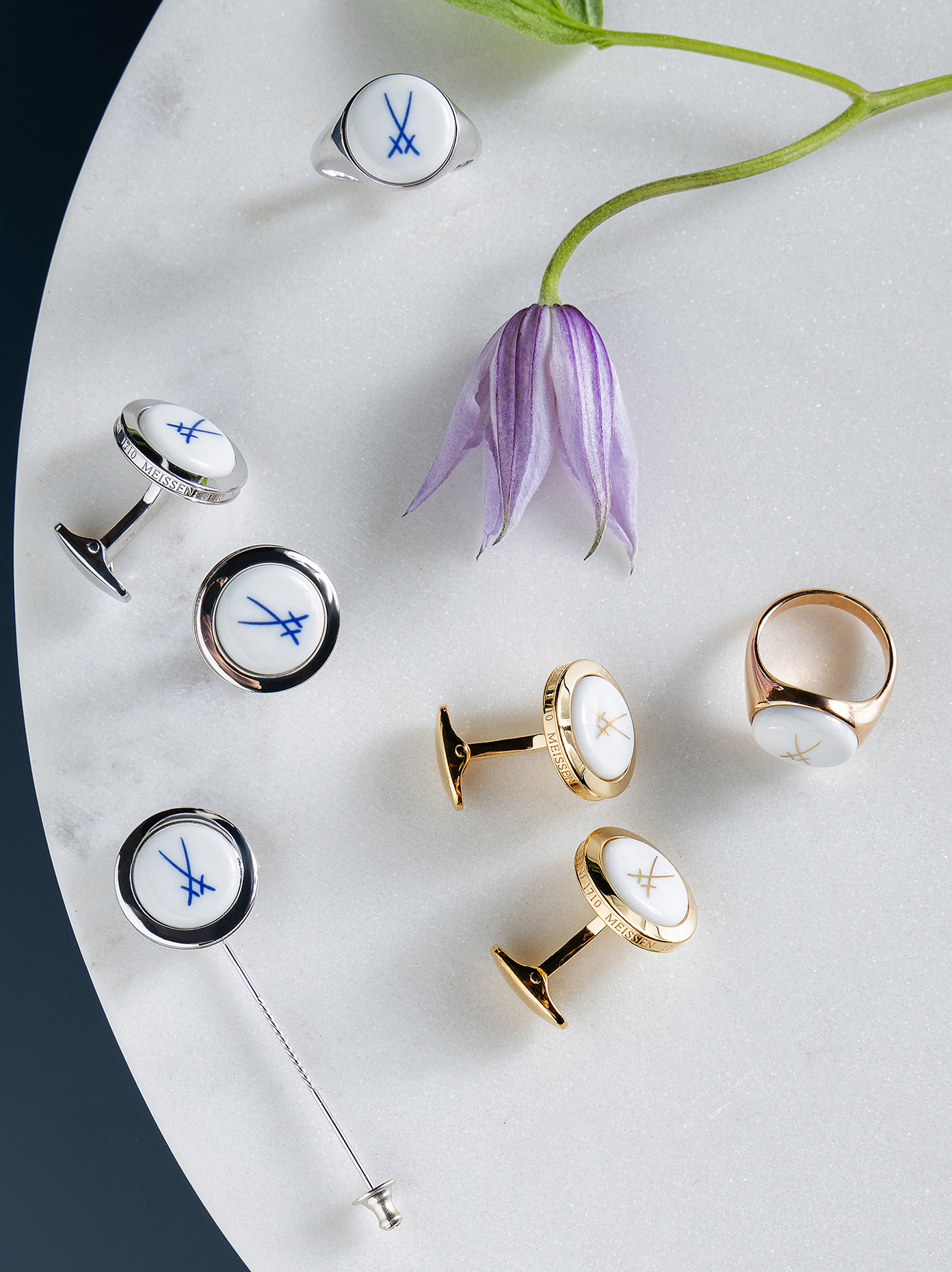 The MEISSEN porcelain manufactory has been combining pure white porcelain with the finest materials such as silver and gold in its jewellery collections for centuries, which is particularly reflected in the manufactory's monogram rings. The initials are hand-painted onto the wafer-thin porcelain sheets by talented artists in perfect brushstrokes, giving each ring its own unique touch. Whether decorated in black, platinum, gold or cobalt blue, each ring makes a statement and is appreciated by men and women alike.