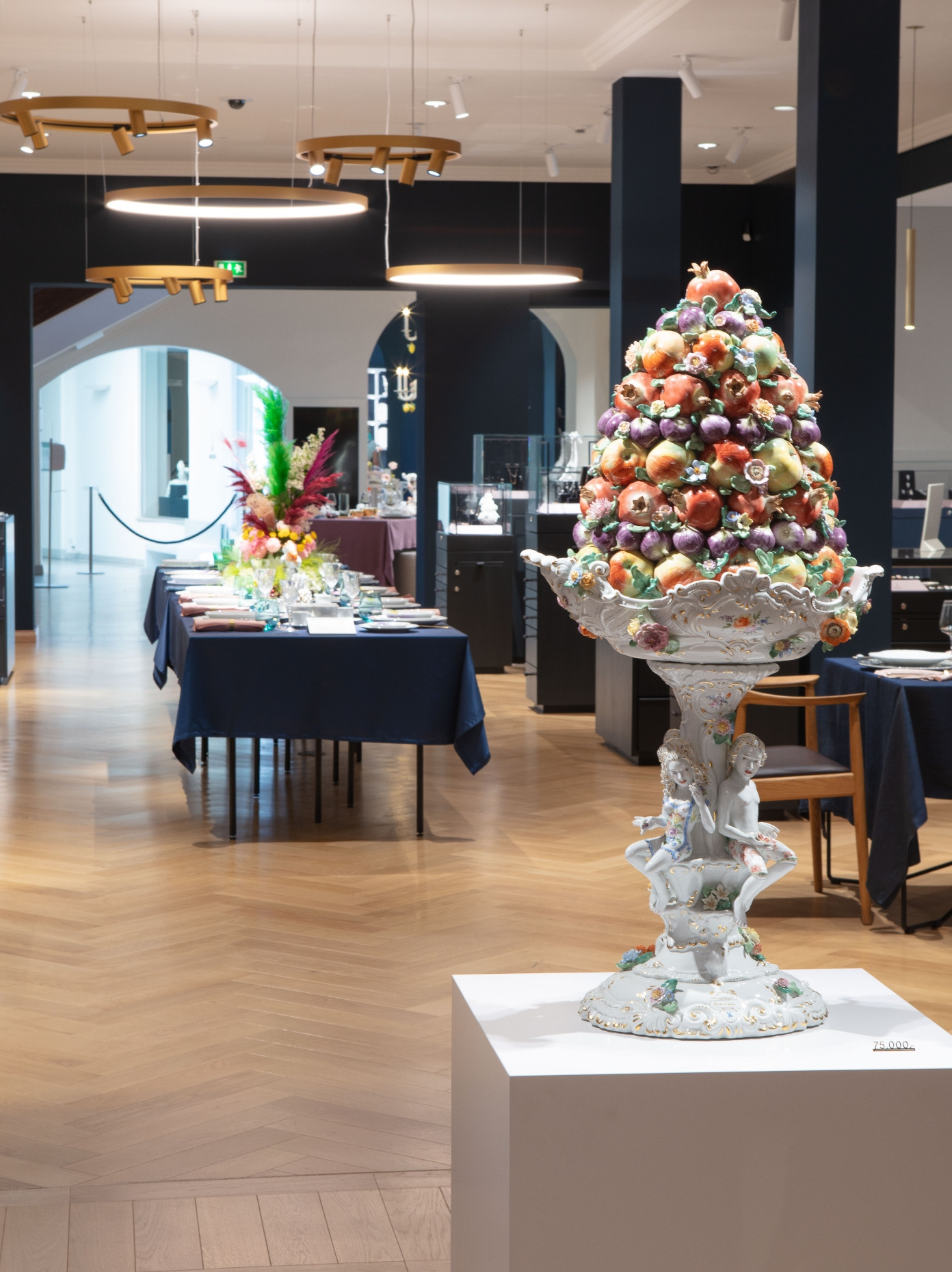 Now that you have gained an insight behind this much-appreciated craft, you can stroll at your leisure through the corridors of our world of experience and also visit our store or the in-house café. To delve even deeper into the world of Meissen porcelain, we recommend a visit to the museum of the Meissen Porcelain Foundation. Here you can experience a journey through over 300 years of manufactory history, which has been separated and themed according to the centuries. Let yourself be drawn into the magical spell of unmistakable, handcrafted pieces, such as the Snowball Blossoms or the Swan Service, and contemporary sculptures. For example, you will see a selection of life-size animal sculptures, which were made at the request of Augustus the Strong. You will also find numerous centrepieces and figurines that adorned the table and dining table of the time, as well as fireplaces and mantelpieces.