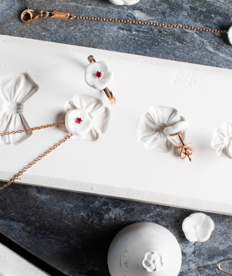 Even when choosing the location for the celebration, care is taken to ensure that guests have a short journey to the venue. The carefully selected catering agency sources only regional products for the perfectly coordinated food and drinks. The table is set with a timeless swan service or the "VITRUV" service. Not only do they make every meal a highlight even after the wedding when used at home - there is also a strong focus on sustainable production. This is because MEISSEN stands for true craftsmanship, with every process step from raw material extraction to completion being carried out in one place with low emissions. Furthermore, the celebrations are adorned with sumptuous dried flower arrangements that are in no way inferior to the fresh flower version and can be used as decoration in your own four walls for a long time afterwards. Even the most emotional piece of all, the wedding dress, is chosen in such a way that, with a few adjustments, it will still serve its purpose after the wedding instead of remaining a mere memento in the wardrobe. And unique pieces of jewelry, whether for the bride from the "1739 Royal Blossom" jewellery collection or for the groom from our gents jewellery collection, are not only absolute eye-catchers on the wedding day.