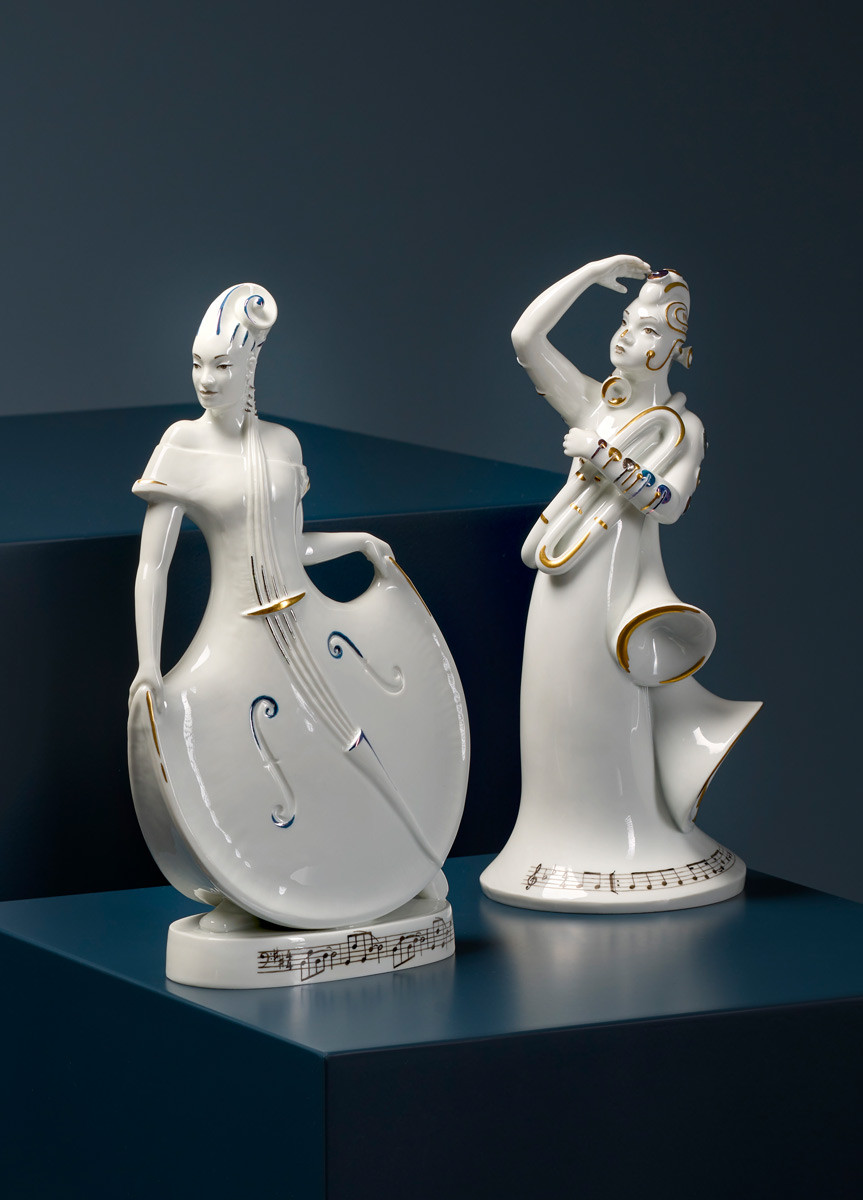 The idea for these figures came about when the artist Maria Walther was studying the Asian mythologies of the Yokai. These fantastic beings are said to animate hundred-year-old objects and bring them to life. Maria Walther played the accordion for 10 years and was part of an orchestra for three of those years. A few years ago, when she picked up the instrument again, which had fallen into disuse, a few memories came flooding back. She wondered what kind of creature the old squeezebox would be when it came to life. This gave rise to the idea of Sia Monica, the fantastic lady with concertina trousers.