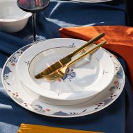 Whether in timeless white or with a colorful design, Meissen porcelain soup plates always cut a fine figure on the dining table. In addition to the classic onion pattern, the Meissen rose or the small scattered flowers, contemporary designs such as the Lucky Dragon, Giant Bloom or Noble Blue can also bring a breath of fresh air to your dinner service. Combine traditional patterns with modern designs in the trendy mix and match style.